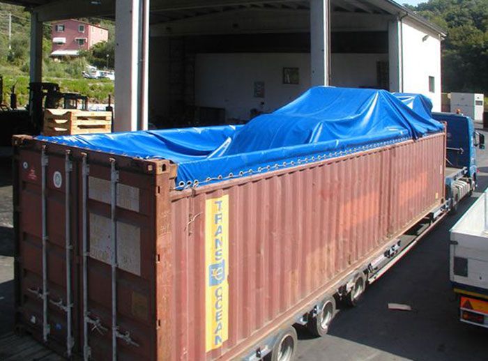 La divisione OVERSEAS de IL TELONE Srl è specializzata nel disegno e produzione di teloni e coperture per qualsiasi tipo di container, partendo dai tipici container OPEN TOP di 20 e 40 piedi prodotti in diversi materiali e finiture, teli per container HIGH CUBE, teloni per carichi FUORI SAGOMA, coperture rettangolari per macchinari e carichi su FLAT RACKS, toppe doganali, pavimenti per container e tanti altri accessori necessari per la riparazione di teloni intermodali. Il Telone Srl parte da materiali e accessori certificati di altissima qualità per poi trasformarli con le ultime tecnologie di taglio, saldatura e occhiellatura garantendo una ottima finitura e durata nel tempo.